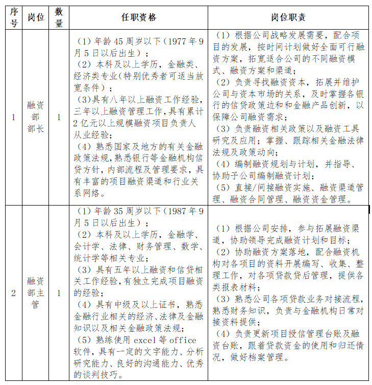 二、招聘岗位、数量及要求