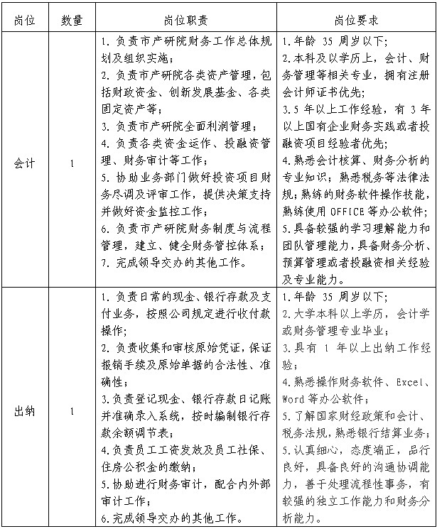 潍坊市产业技术研究院公开招聘财务人员2名