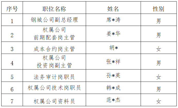 经简历筛选、面试、考察等合格后,现将7名拟录用人员名单面向社会予以公示。
